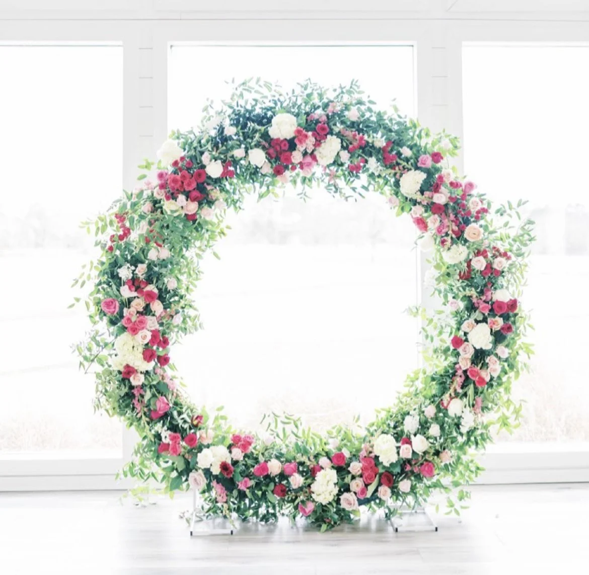 She mentioned wanting a large circle arbor with a few flowers and greenery, and with her giving me complete creative control, I couldn’t resist covering the entire arbor in her full flower arrangement combo.